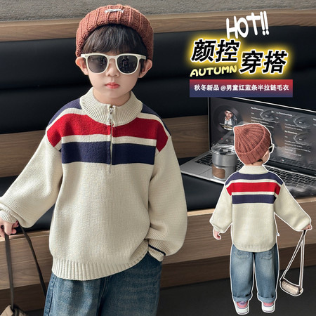 1*4下载“88177红蓝条纹半拉链毛衣模特”图片包