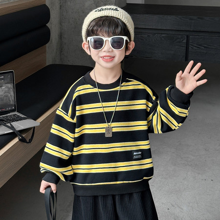 杭*图收藏“25601黄条纹贴标加绒卫衣”