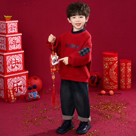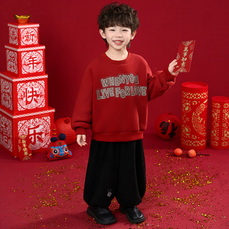 1*1收藏“25682加绒袖贴布红色卫衣”